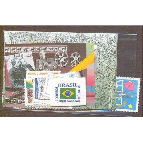 Etiquetas: 1995 - ano completo - 45 selos 2 regulares 4 blocos - rhm r 376, 95 107, 70 ufs, ano completo de selos e blocos