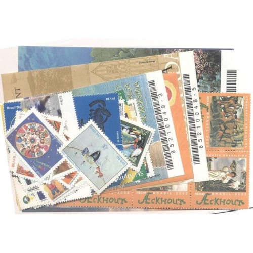 Etiquetas: 2002 - ANO COMPLETO - 47 SELOS COMEMORATIVOS - 6 BLOCOS - MINT - RHM R$ 487, 00 (97, 40 UFs X R$ 5, 00)