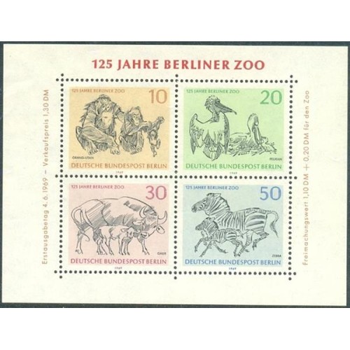 Etiquetas: ALEMANHA BERLIN - 1969 - FAUNA - Y B-2 MI B-2 - 125º ANIVERSÁRIO DO ZÔO DE BERLIN - ORANGOTANGO E FILHOTE - PELICANOS E FILHOTE - BÚFALA E FILHOTE - ZEBRA E FILHOTE - BLOCO MINT