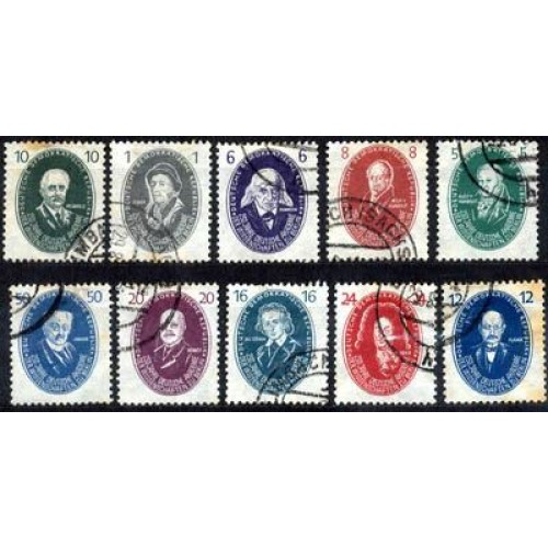 Etiquetas: Alemanha Democratica - MI 261/270 - Y 15/24 (1950) 250 º ANIVERSÁRIO DA FUNDAÇÃO DA ACADEMIA DE CIÊNCIAS EM BERLIN - SÉRIE 10 SELOS COM CARIMBO DE FAVOR