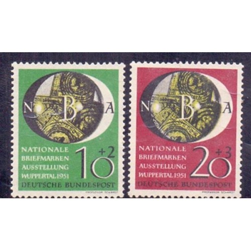 Etiquetas: ALEMANHA FEDERAL - EXPOSIÇÃO FILATÉLICA NACIONAL EM WUPPERTAL - Y 0027/28 (1951) EXPOSIÇÃO FILATÉLICA NACIONAL EM WUPPERTAL - 2 SELOS NOVOS SEM GOMA