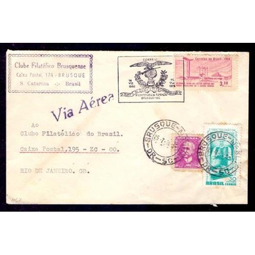 Etiquetas: AÉREO - ENVELOPE CIRCULADO DO CLUBE FILATÉLICO BRUSQUENSE (SC) PARA RIO DE JANEIRO - 3 SELOS: RUI BARBOSA, PROF. ROCHA LIMA E HÉROIS BRASILEIROS 2ª GUERRA MUNDIAL - CARIMBO DE CHEGADA NO VERSO PARCIALMENTE VISÍVEL