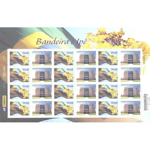 Etiquetas: C-2853 - MINT - FOLHA - 2009 - BANDEIRA E IPÊ - HORIZONTAL - VINHETA CÂMARA DE VEREADORES DE ITAJAÍ