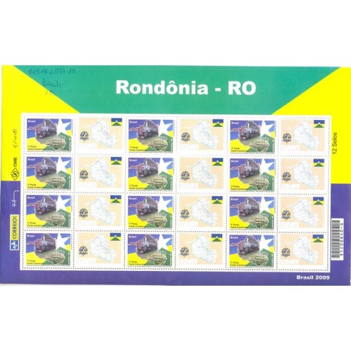 Etiquetas: C-2926 - 2009 - MINT - FOLHA - RONDÔNIA - VINHETA MAPA BRASÃO E BANDEIRA DO ESTADO DE RONDÔNIA - FOLHA COM ANOTAÇÕES A CANETA NA MARGEM SUPERIOR ESQUERDA
