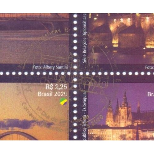 Etiquetas: C-3902/3905 - FOLHA 6 SE-TENANTS RELAÇÕES DIPLOMÁTICAS REPÚBLICA TCHECA E ESLOVÁQUIA - 2020 - FOLHA MINT COM 24 SELOS E CARIMBO CBC BRASÍLIA DOURADO - LINDA