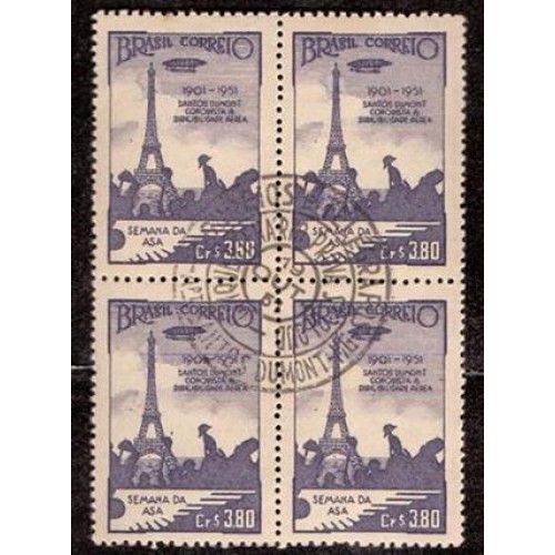 C-0271 - QUADRA - CARIMBO CBC - SEMANA DA ASA 1951 - AVIAÇÃO - SANTOS DUMONT