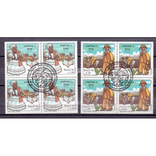 Etiquetas: C-2018/2019 -1996 - TEMA AMÉRICA: TRAJES TIPICOS NACIONAIS: VAQUEIRO DO NORDESTE E BAIANA SÉRIE 2 - QUADRA - CARIMBO CBC - GOMADA