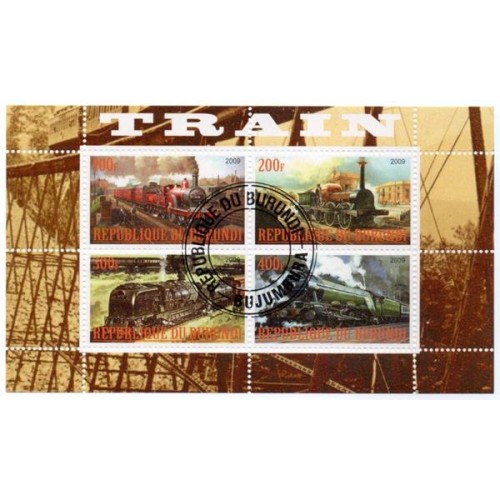 BURUNDI - BLOCO COM 4 SELOS - CARIMBADO - TRANSPORTE - TRENS - 2009