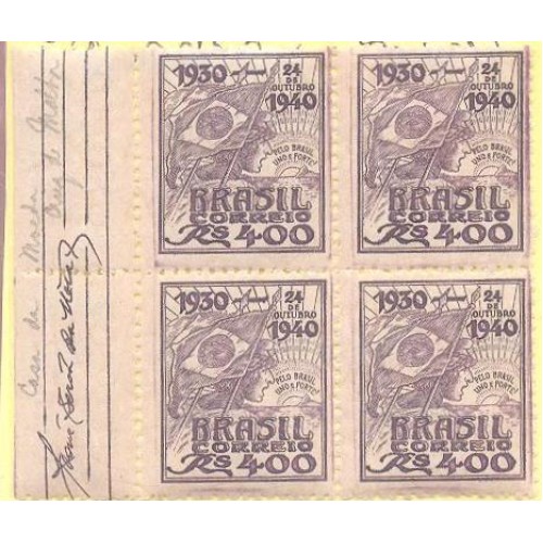 C-0157A - 1940 - DECÊNIO DO GOVERNO GETÚLIO VARGAS - QUADRA - MINT - GOMADA - RHM R$ 7.000,00 (1.400 UFS X 5,00)