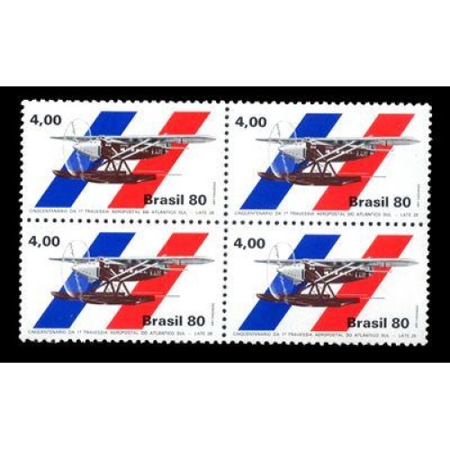 C-1146 - 1980 - CINQUENTENÁRIO DA 1 ª TRAVESSIA AEROPOSTAL DO ATLANTICO - QUADRA MINT - GOMADA - RHM R$ 8,00 ( 1,60 UFS X R$ 5,00)