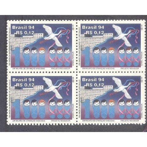 Etiquetas: C-1912 - QUADRA - NOVA - GOMADA - UM MILHÃO DE CRIANÇAS NASCIDAS - 1994 - RHM R$ 8, 00 (1, 60 UFS X R$ 5, 00)
