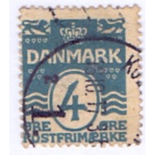 Etiquetas: DINAMARCA - 1905-13 - USADO - NUMERAL SOBRE ONDA - 4 O AZUL DENTEAÇÃO 14X14 1/2 - YT-51a