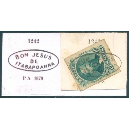 Etiquetas: I-34A - 1876 - DOM PEDRO II - "PERCÉ" - 100 RÉIS - VERDE - TIPO 2a - CARIMBO BOM JESUS DE ITAPOANNA