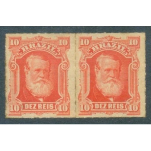 Etiquetas: I-37 - 1877 - DOM PEDRO II - "PERCÉ" - BARBA BRANCA - 10 RÉIS - VERMELHO - NOVO - GOMADO - CHARNEIRA