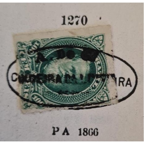 Etiquetas: I-41 - CARIMBO CAXOEIRA DA LIMEIRA (PA-1866) - PRATICAMENTE COMPLETO - 100 RÉIS - BARBA BRANCA