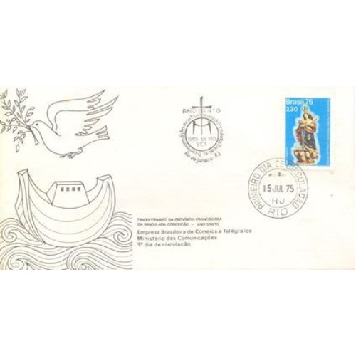Etiquetas: fdc-071 - 1975 - cbc 1º dia rio de janeiro - ano santo e tricentenArio da provIncia franciscana da imaculada conceiCAo - rhm r 148, 75 42, 50 ufs, brasil - fdc oficiais