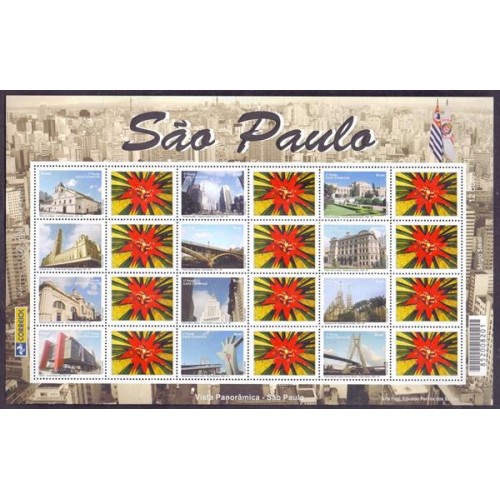 Etiquetas: C-2873/2884 - 2009 - MINT - FOLHA - SÃO PAULO HORIZONTAL - VINHETA FLOR VERMELHA
