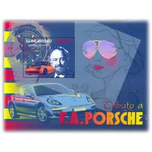 GUINÉ BISSAU - F.A. PORSCHE E SEUS AUTOMÓVEIS, BLOCO MINT - ANO 2013