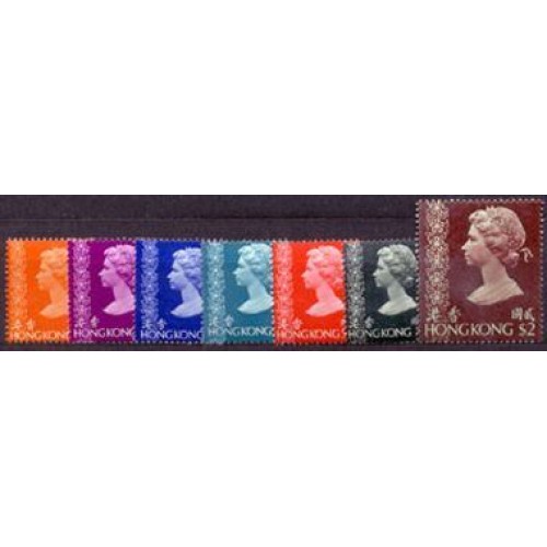 Etiquetas: HONG KONG - Y 206+268+270+271+272+274+276 (1973)SÉRIE CORRENTE RAINHA ELIZABETH II - 10c, 20c, 30c, 40c, 50c, $1, $2 - EFÍGIE DA RAINHA - 7 SELOS DE SÉRIE DE 14