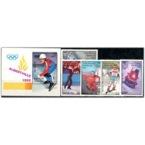 LAOS - ANO 2013 LAOS - Y1022/26 BL.118 (1992)-OLIMPÍADA DE INVERNO A ALBERTVILLE,SÉRIE COM 5 SELOS,BLOCO MINT