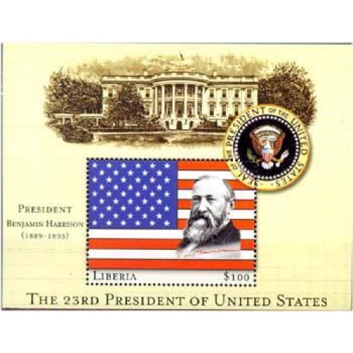 Etiquetas: LIBÉRIA - 23° PRESIDENTE DOS USA BENJAMIN HARRISON (1889/93) 2001 - BLOCO MINT - ANO 2013