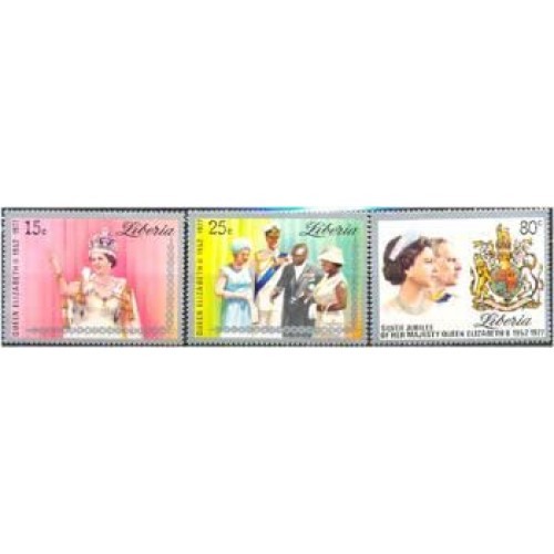 Etiquetas: LIBÉRIA - Y746/48 - 25 ANOS DA COROAÇÃO DA RAINHA ELISABETH II 1977 - SÉRIE COM 3 SELOS MINT - ANO 2013