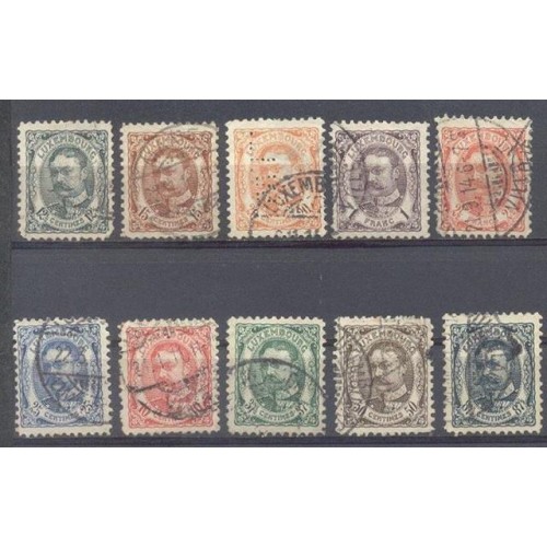 LUXEMBURGO USADO - Y 0074/79+81/84 (1906-1915) REI GUILHERME IV- 10c-12 1/2c-15c-20c-25c-50c -871/2C- 1f- 2 1/2f - 10 SELOS DE UMA SÉRIE DE 12 - USADOS DE BOA QUALIDADE