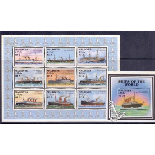 MALDIVAS - MINIFOLHA + BLOCO - FORTE OXIDAÇÃO - NAVIOS