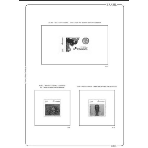 Etiquetas: 2024 - LANÇAMENTO - SUPLEMENTO ÁLBUM CLASSIC PLUS QUADRAS PARA SELOS INSTITUCIONAIS (13 FOLHAS)
