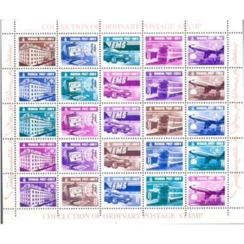 MONGÓLIA - ANO 2013 - Y2194/2218 (1998)-SÉRIE CORRENTE,TRANSPORTE E COMUNICAÇÕES:CARRO,TREM,AVIÃO,TELEVISÃO-AGÊNCIA DO CORREIO,LINDA SÉRIE EMITIDA EM FOLHINHA DE 25 SELOS MINT