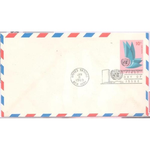 Etiquetas: ONU NEW YORK - 1969 - ENVELOPE PRE-SELADO AÉREO COM SELOS IMPRESSO COM DESENHO PARECIDO COM O SELOS A-8 - PORÉM EM ROSA E VERDE COM VALOR FACIAL DE 10c ALEGORIA