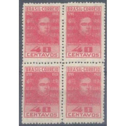 Etiquetas: C-0203 - 1945 - MINT - QUADRA - 150 ANOS DO NASCIMENTO DE FRANCISCO MANOEL DA SILVA - AUTOR DA MÚSICA DO HINO NACIONAL - GOMADO
