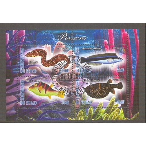 REPUBLIQUE DU TCHAD - PEIXES - SERIE 4 SELOS CARIMBADOS