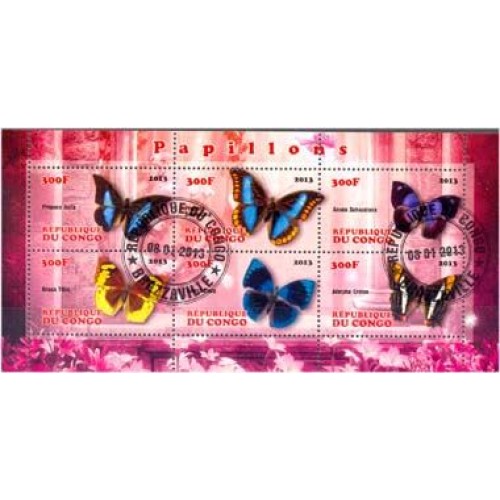 CONGO - FAUNA - BORBOLETA - 2013 - BLOCO CARIMBADO