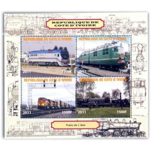 Etiquetas: COSTA DO MARFIM - ANO 2011 - TRENS DA ÁSIA - SERIE 4 SELOS USADOS EMITIDOS EM FOLHINHA