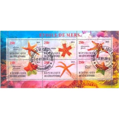 Etiquetas: COSTA DO MARFIM - FAUNA - ESTRELA DO MAR - 2013 - BLOCO CARIMBADO