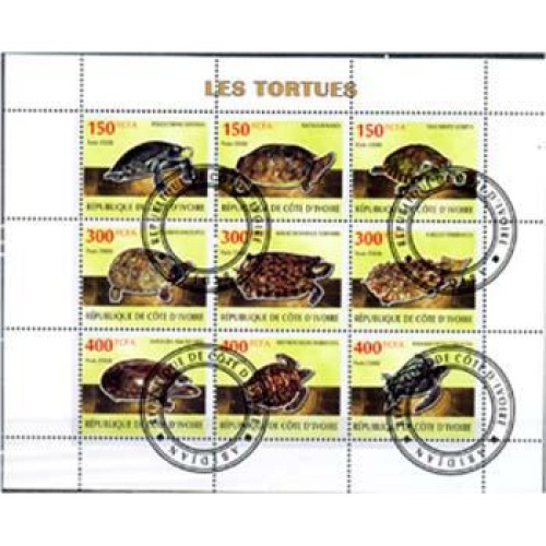 Etiquetas: COSTA DO MARFIM - TARTARUGAS 2009 - SÉRIE COM 9 SELOS USADOS EMITIDOS EM FOLHINA