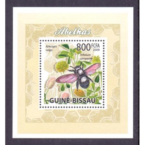 Etiquetas: FAUNA - FLORA - ABELHA E FLORES - XYLOCOPA VALGA - 1 SELO - GUINÉ-BISSAU - 2009