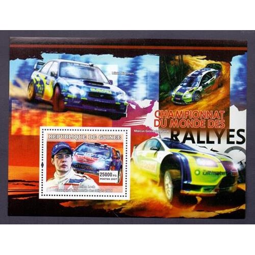 TRANSPORTE - CARROS - BLOCO 1 SELO - `SEBASTIEN LOEB-CAMPEÃO MUNDIAL DE RALI` - GUINÉ - 2007