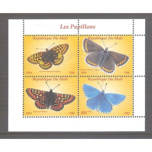 MALI - FAUNA - BORBOLETAS - 2014 -BLOCO CARIMBADO