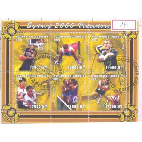 Etiquetas: MOÇAMBIQUE - 2001 - USADO - OLIMPÍADAS - GANHADORES OLIMPÍADAS DE SYDNEY 2000 - MINI FOLHINHA C/ 6 SELOS - Y 15566/71