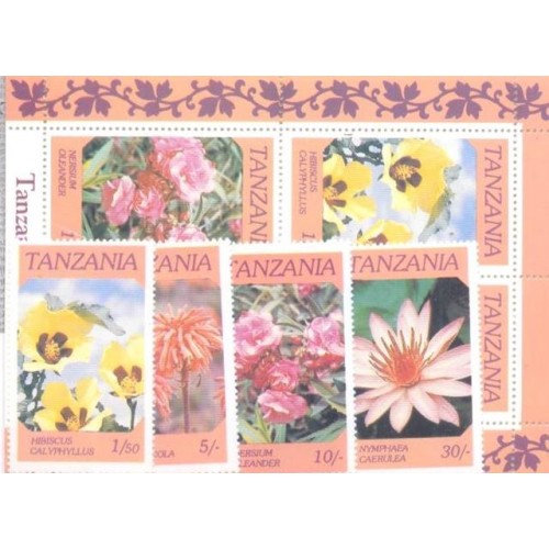 Etiquetas: TANZÂNIA - 1986 - FLORES TÍPICAS - BLOCO + SELOS - MINT
