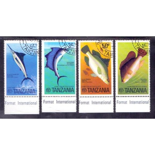 TANZÂNIA - FAUNA MARINHA - PEIXES DE ALTO MAR - SÉRIE COM 4 SELOS CARIMBADOS