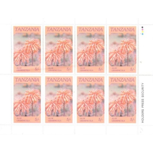 TANZÂNIA - MINI FOLHA C/ 8 SELOS - FLOR - ALOE GRAMINICOLA - MINT