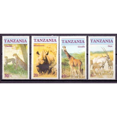 Etiquetas: TANZANIA Y 285/88 (1986) FAUNA EM EXTINÇÃO (ONYX, GIRAFA, RINOCERONTE, GHEPARDO) SÉRIE DE 4 SELOS MINT