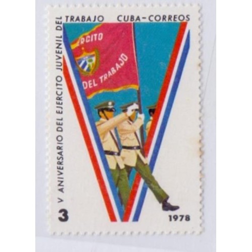 CUBA - 1978 - MINT - POLÍTICA: 5º ANIVERSÁRIO DA ARMADA JUVENIL DO TRABALHO - JOVENS FARDADOS, MARCHANDO C/ ESTANDARTE - YT-2072