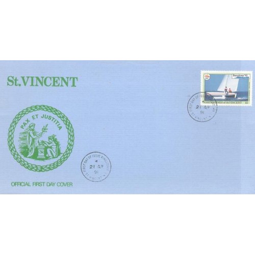 Etiquetas: GRENADINE DE ST VICENTE - 1992 - FDC - JOGOS OLÍMPICOS DE BARCELONA $2 VELA - VELEIRO TORNADO - FDC PADRÃO DE ST VICENT COM BRASÃO