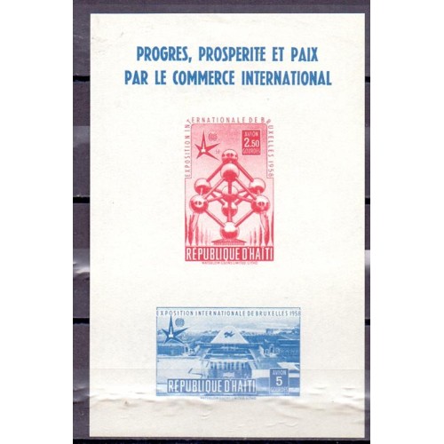 Etiquetas: HAITI BLOCO - Y B 7 (1958) - EXPO DE BRUXELAS - BLOCO MINT NÃO DENTEADO
