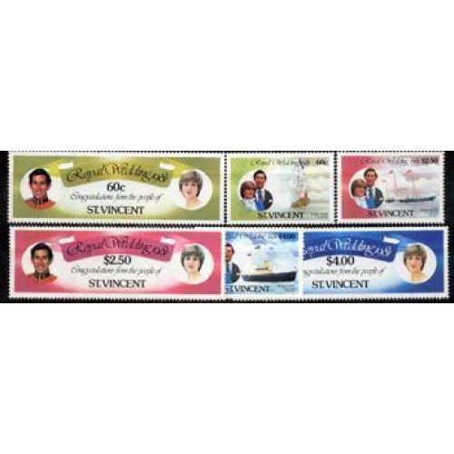ST.VINCENT - Y 622/27 (1981) - CASAMENTO DO PRÍNCIPE CHARLES COM LADY DIANA SERIE 6 SELOS MINT