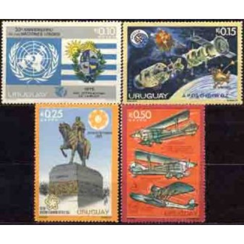 URUGUAY - ANO 1975 ACONTECIMENTOS DO ANO : 30º ANIVERSÁRIO DAS ONU, ANO INTERNACIONAL DA MULHER, BICENTENÁRIO DOS ESTADOS UNIDOS, COOPERAÇÃO ESPACIAL USA E URRS , 50 º ANIVERSÁRIO DOS ACONTECIMENTOS AÉREOS URUGUAYOS - SÉRIE 4 SELOS MINT